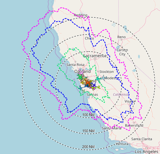 My goal was to make my distance rings more readable when viewing them in satellite mode. For that, I added a second set of rings slightly offset from the first. A white ring/text for the background then a black dashed ring/text for the foreground.
