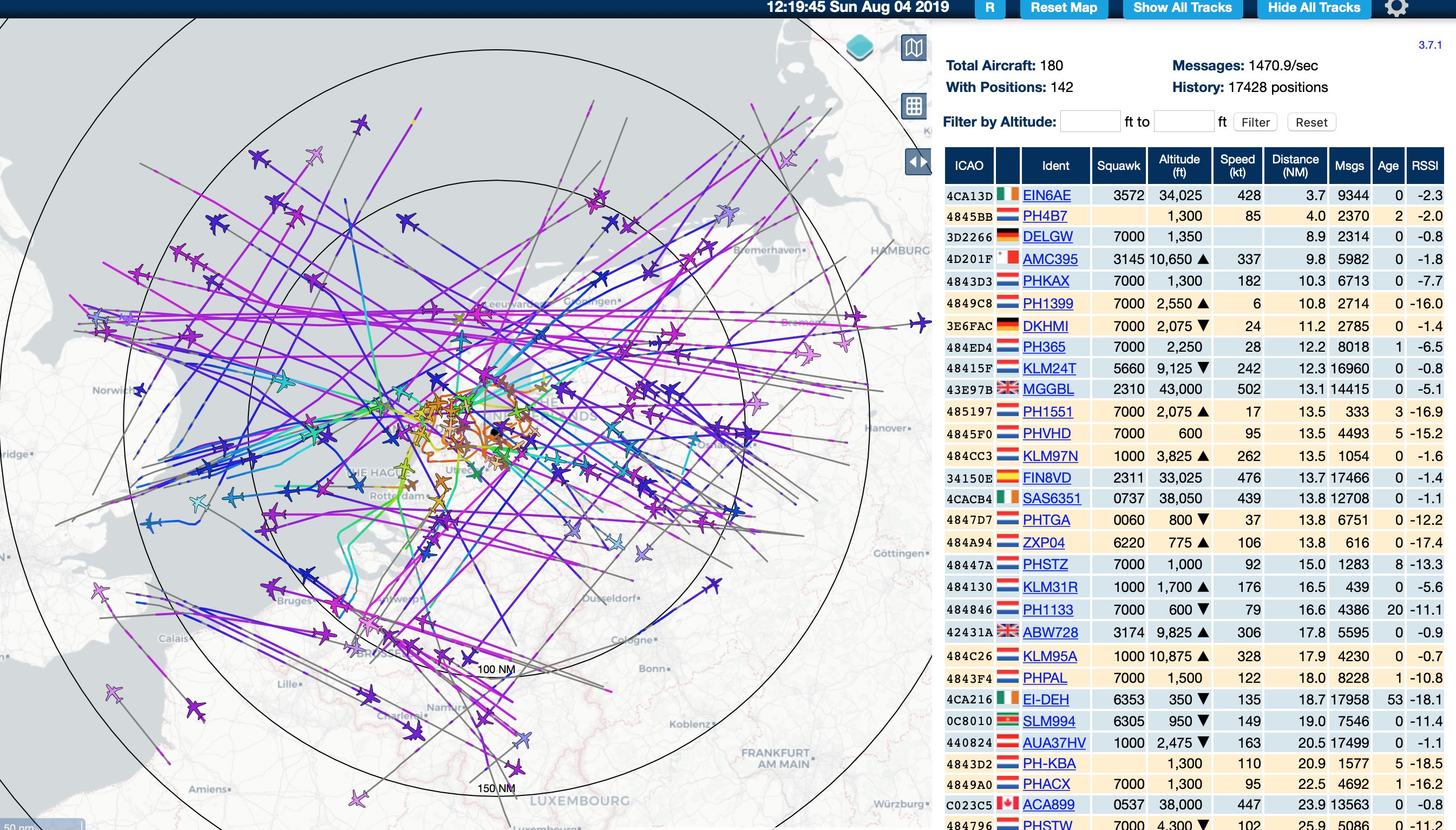 Due to my favourable location my feeder covers the airspace between London, Paris, Brussels, Amsterdam and Frankfurt so my orange FA dongle has to swallow quite some traffic. More than 250 planes in the air and 1300 msg/s is no exception so statistically Iām not doing too bad ranking just outside the top 100 flight feeders. Iāve been tampering with the RF gain to maximize the throughput but I always end up with either losing long range or overhead traffic, it seems that the 8 bit ADC of the RT820 is the limiting factor for the dynamic range I would like to obtain. I already have a better SDR, the RSP2 from SDRPlay but I believe itās not really compatible with dump1090 so I prefer to use it for other purposes. Maybe I should give the Airspy R2 a try, I guess that itāll need a preamp as well?