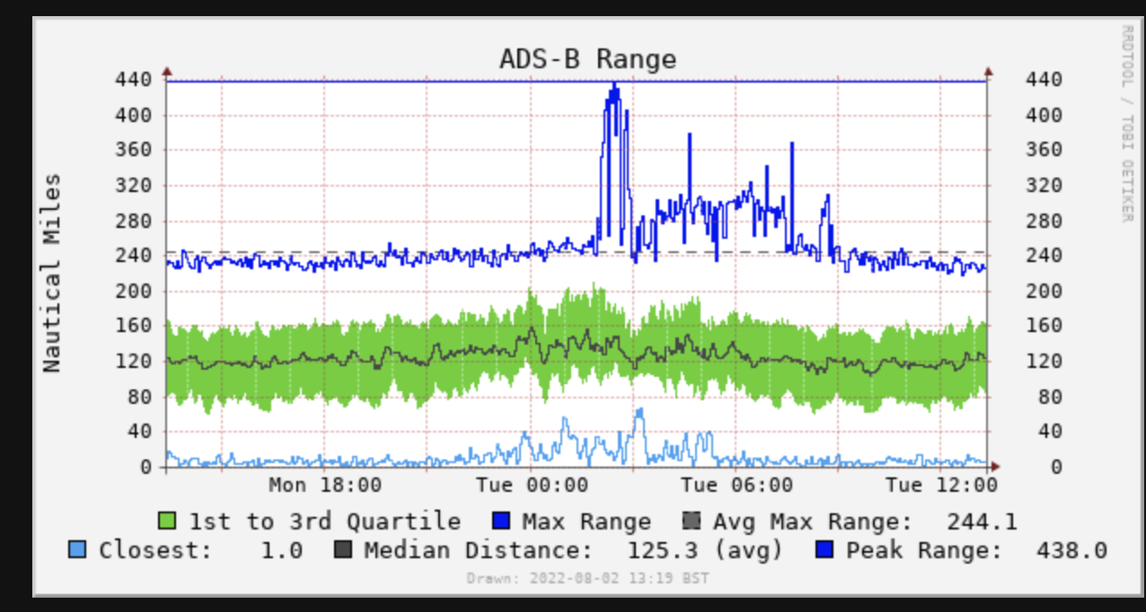 Today I have an unbelievable ADS-B peak range of 438. Was I the only one this morning?